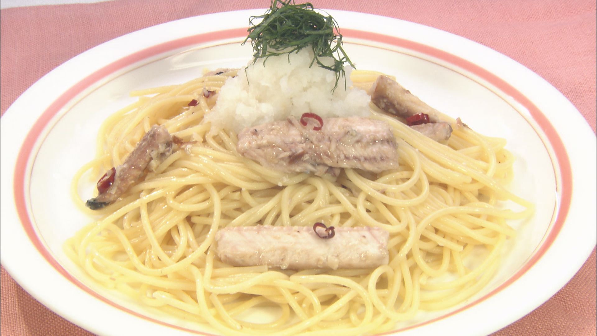 - フライパンにオリーブ油とにんにく、唐辛子を入れ熱し、にんにくの香りがしてきたら2のさんまと塩麹を大さじ1入れて炒め合わせ、さらに茹でたスパゲティーを加えて炒めます。